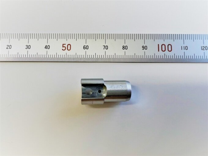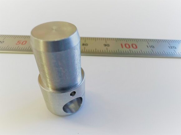 【バリ無し】産業機器用ボス部品 材質:A5056 寸法精度:±5/1000 アルミ合金製、産業機器向け装飾部品兼位置決めボス部品となります。500個程度のNC自動盤切削としては小ロットの生産量ですが、フレキシブルに生産対応いたしました。 「バリ無きこと」が重要であり、バリ発生を工程工夫により抑制しています。